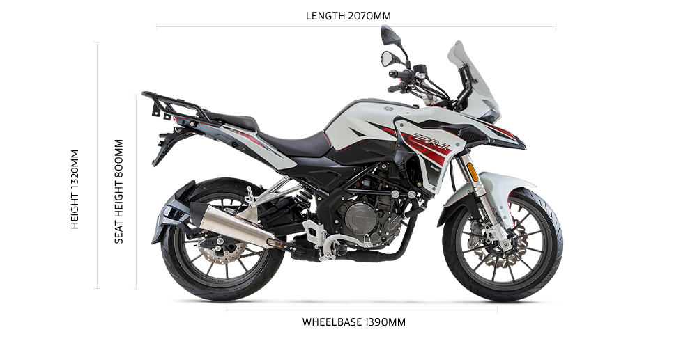 The TRK 251 is packed with standout features that truly showcase Benelli’s commitment to excellence. With the convenience of its 18L fuel tank, TRK 251 allows you to travel longer distances without worrying about refueling. If you need extra storage, optional pannier kits are available to suit your needs.
