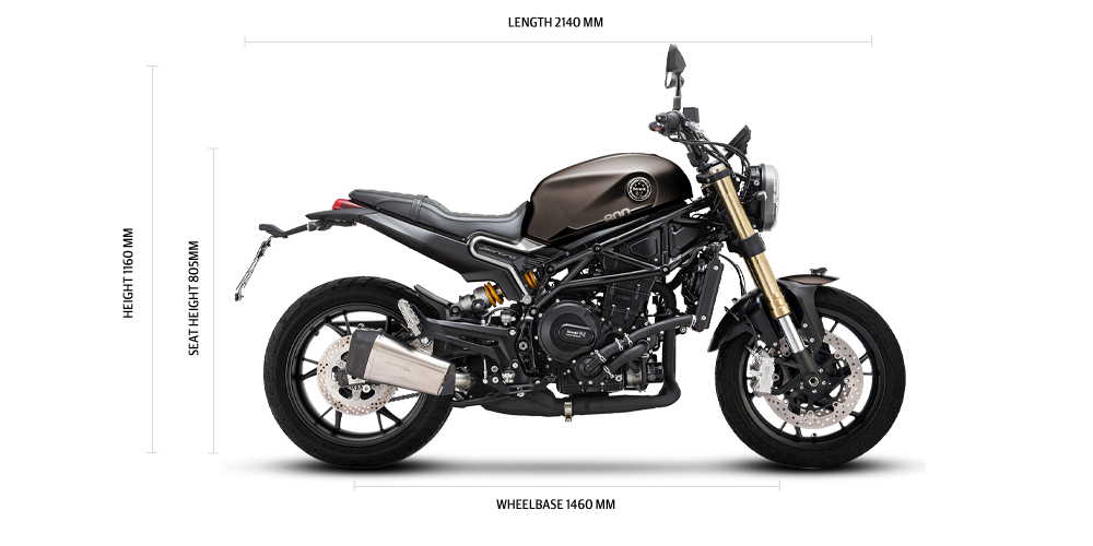 The Benelli braking system is exceptionally safe thanks to the double 320 mm diameter semi-floating disc on the front and four-piston radial-mount callipers, and a 260 mm diameter disc on the back with a double-piston calliper. The 17” aluminium alloy tubeless spoked rims mount 120/70-17 and 180/55-17 tyres.